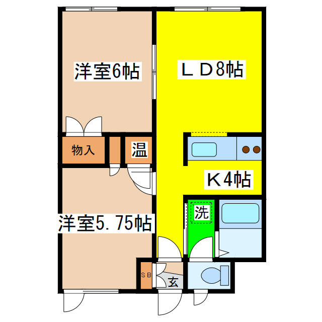 LD 8.0帖/K 4.0帖/洋室 6.0帖/洋室 6.0帖 - 向き